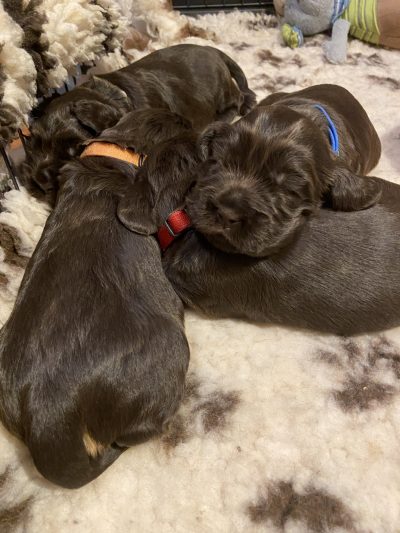Die Welpen sind in den letzen Tagen ausgezogen. Ihre Entwicklung in den ersten 9 Wochen ihres Lebens könnt Ihr hier nachverfolgen.