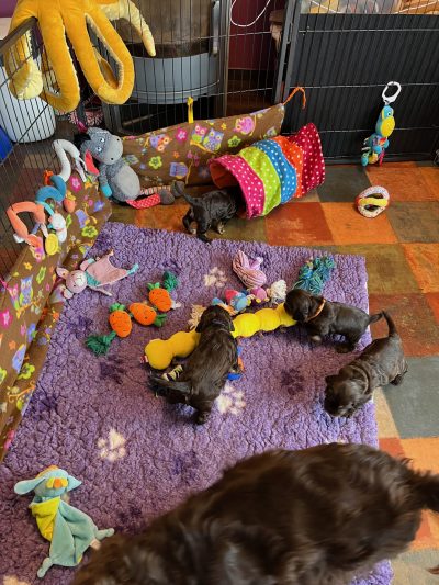 3 Rüden und 2 Hündinnen in braun und braun mit loh haben zeitweise unser Rudel bereichert.